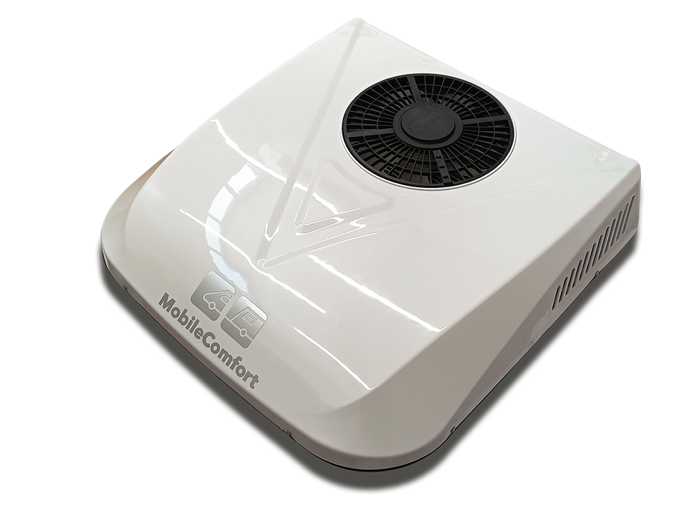 Кондиционер MobileComfort MC2812T, охлаждение 2.8kW, питание 12V, выход воздуха 312х57мм, габариты накрышного блока дшв: 749х749х169 мм, вентпанель чёрная 560х445х10 мм, с крепежём, пульт ДУ Отверстие выреза в крыше допускается от 380х250 до 480х380, толщина крыши от 30 до 80 мм, испаритель медный
