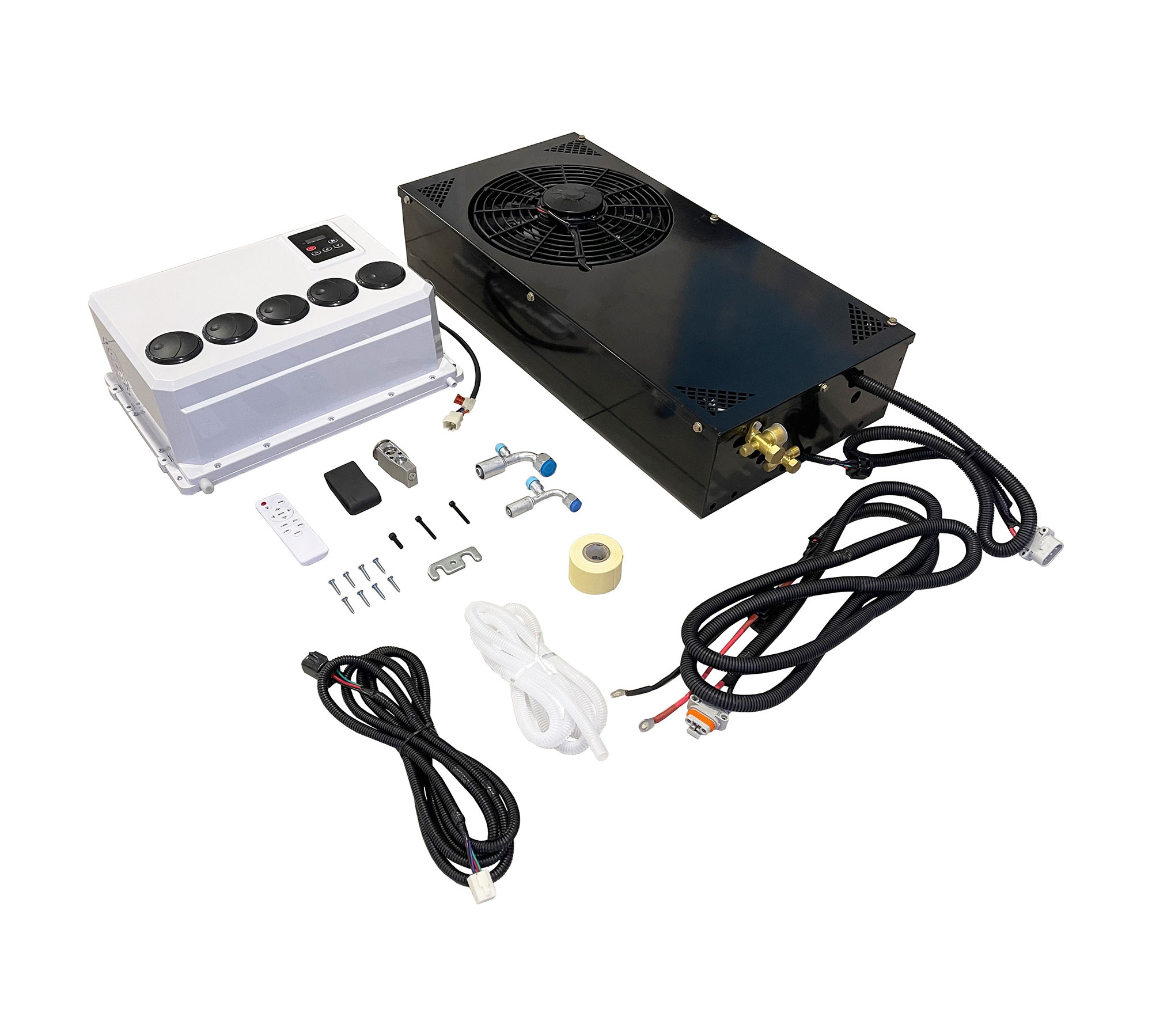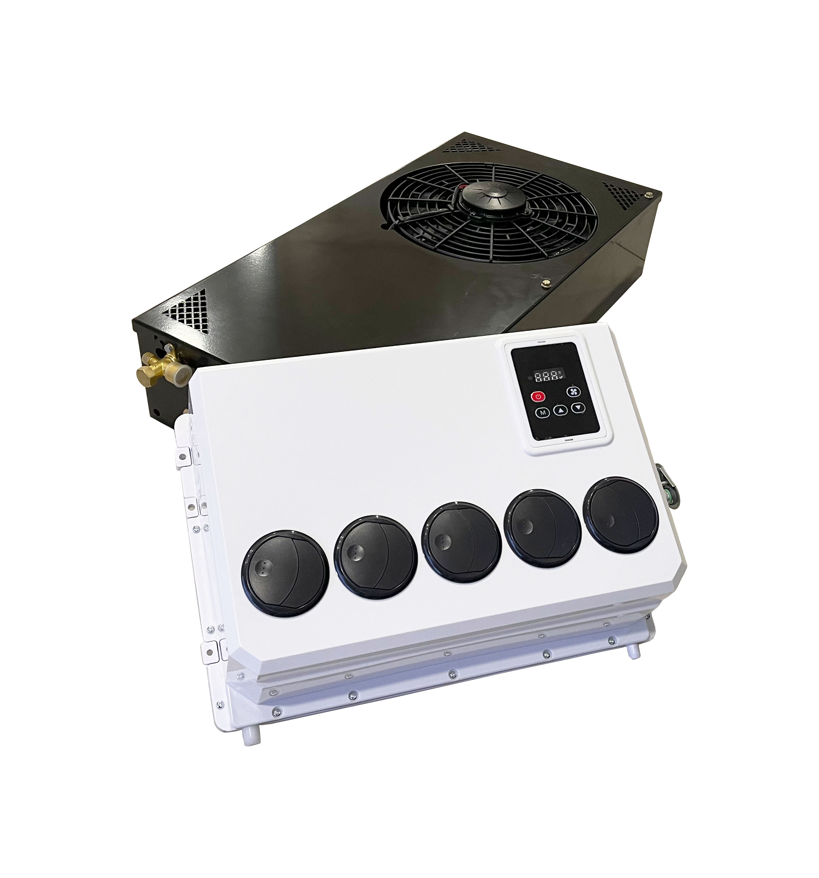 Мощность до 3 кВт. Прекрасное решение для охлаждения салона грузового транспорта или спецтехники. В комплект кондиционера входит набор метизов, соединительные шланги, наружный и внутренний блоки. Монтаж оборудование можно произвести самостоятельно, останется только заправить систему фреоном в сервисном центре.