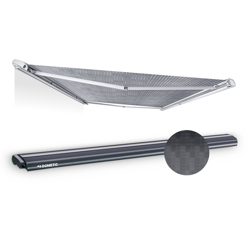 Накрышная маркиза серии PerfectRoof PR 2500 от компании Dometic имеет длину 3.5 метра, сматывается-разматывается вручную посредством рукоятки. Корпус маркизы – чёрный, полотно – серое. Выдвижение маркизы составляет 275 см.
