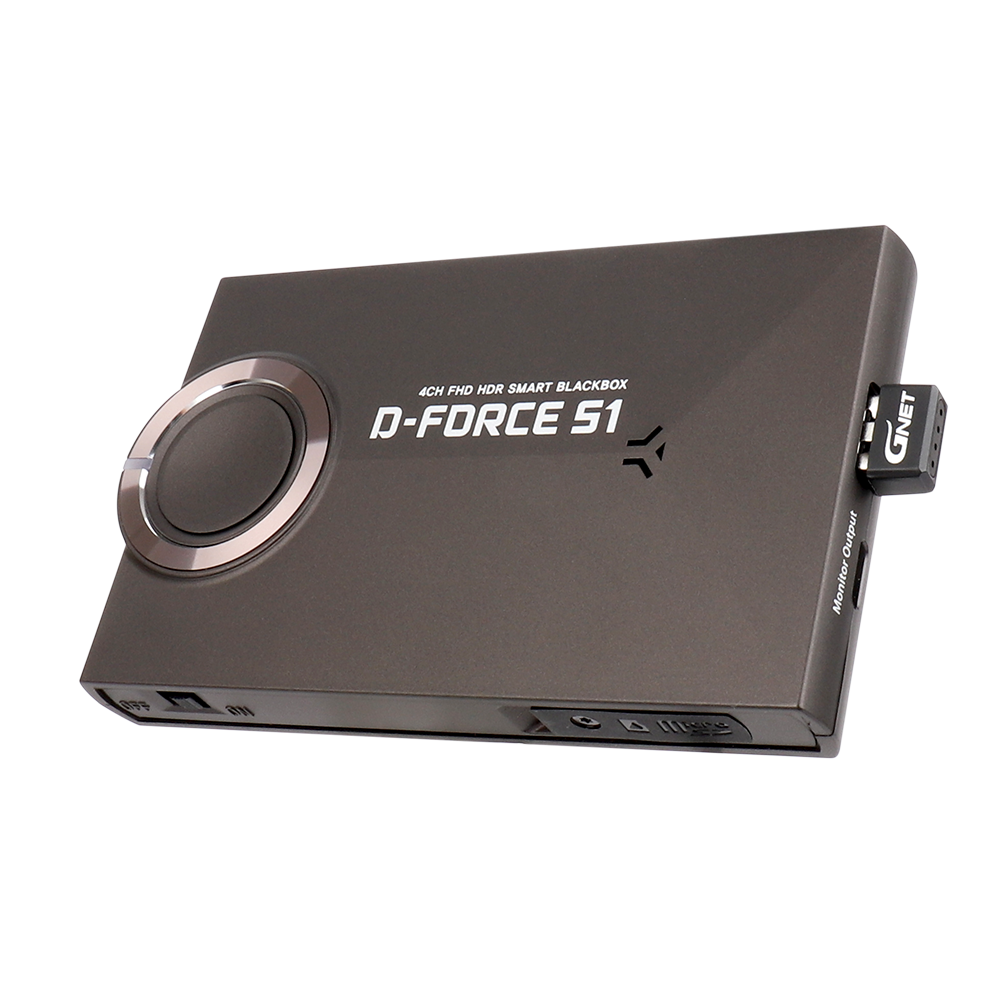 В GNET D-FORCE S1 TRUCK присутствует датчик удара и датчик движения в кадре. Устройство поддерживает SSD-карты до 512 GB, а также имеет возможность подключения внешнего SSD до 2 Тбайт. Угол обзора каждой из 4 камер составляет 140°; пыле-влаго защита уличных камер - IP69K.
