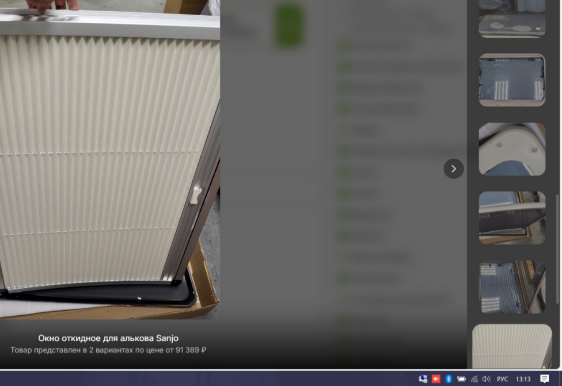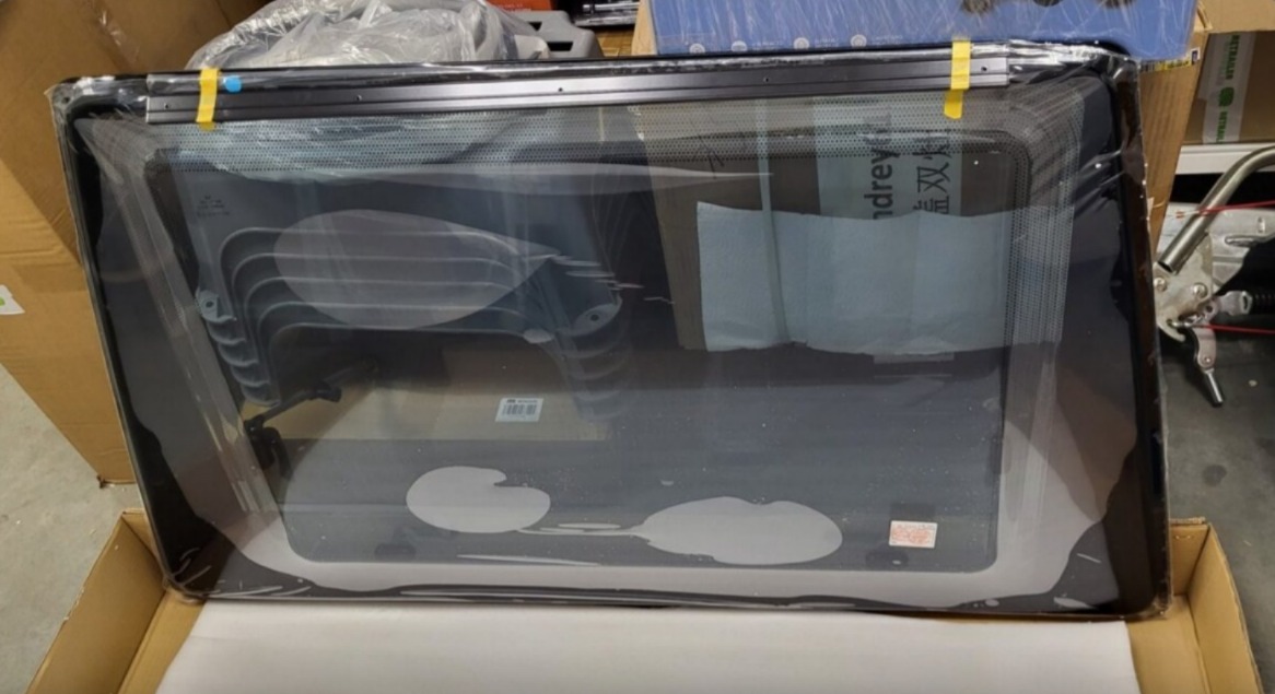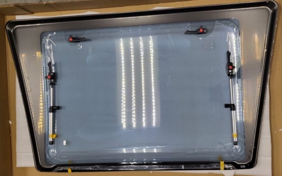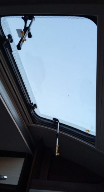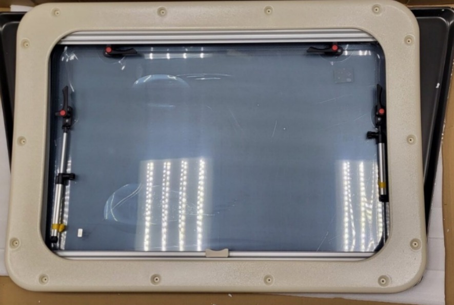 Откидное окно для алькова автодома. Монтаж на передний верхний загиб алькова.