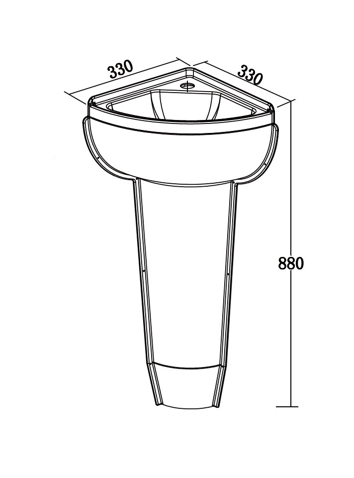 Раковина угловая 330x330мм с пьедесталом акриловая