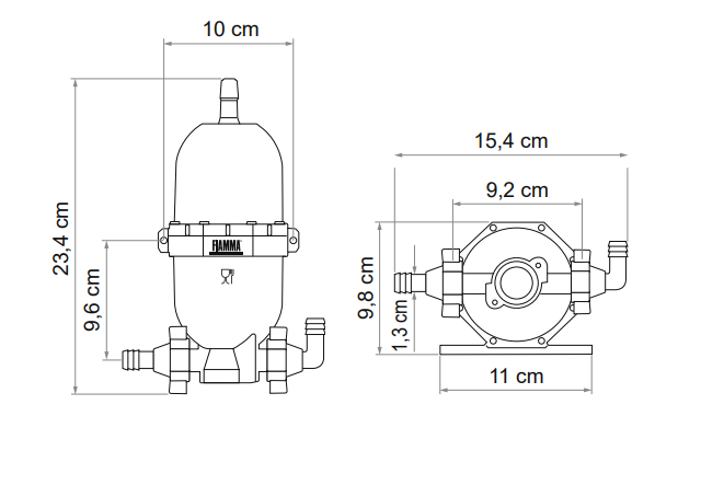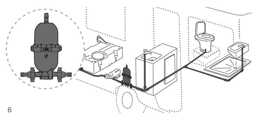 -Расширительный бак Fiamma - Давление можно регулировать, предустановлено на 0,9 бар, может быть увеличено с помощью компрессора
