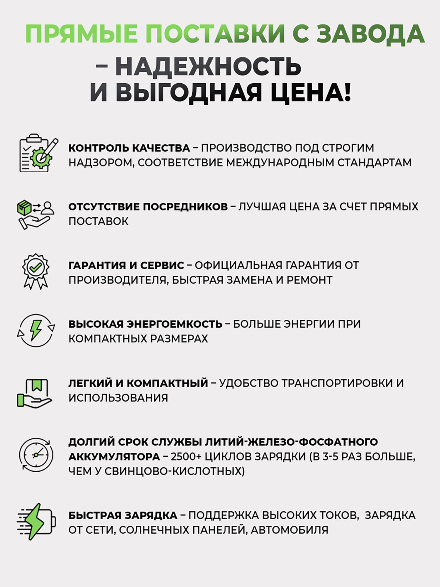 — Аккумулятор LiFePO4 — "бак с энергией": безопасный, долговечный, стабилен на морозе.