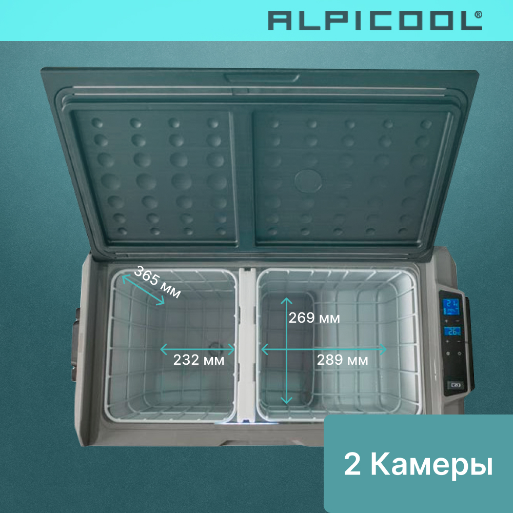 Внутреннее пространство данной модели представлено в виде просторного отсека, разделенного на две части, в каждой из которых Вы можете устанавливать необходимую температуру. Отсеки разделяет специальная перегородка, при изъятии которой, внутри холодильника образуется единый температурный режим. Вы можете с легкостью разместить достаточно большое количество продуктов и ёмкостей с напитками внутри каждого отделения. При открытии автохолодильника срабатывает датчик, за счет чего сразу же включается внутреннее освещение, равномерно распределяющее свет на оба отсека (даже при выключенном питании). Данная модель может работать в трех режимах: охлаждение, заморозка и глубокая заморозка.