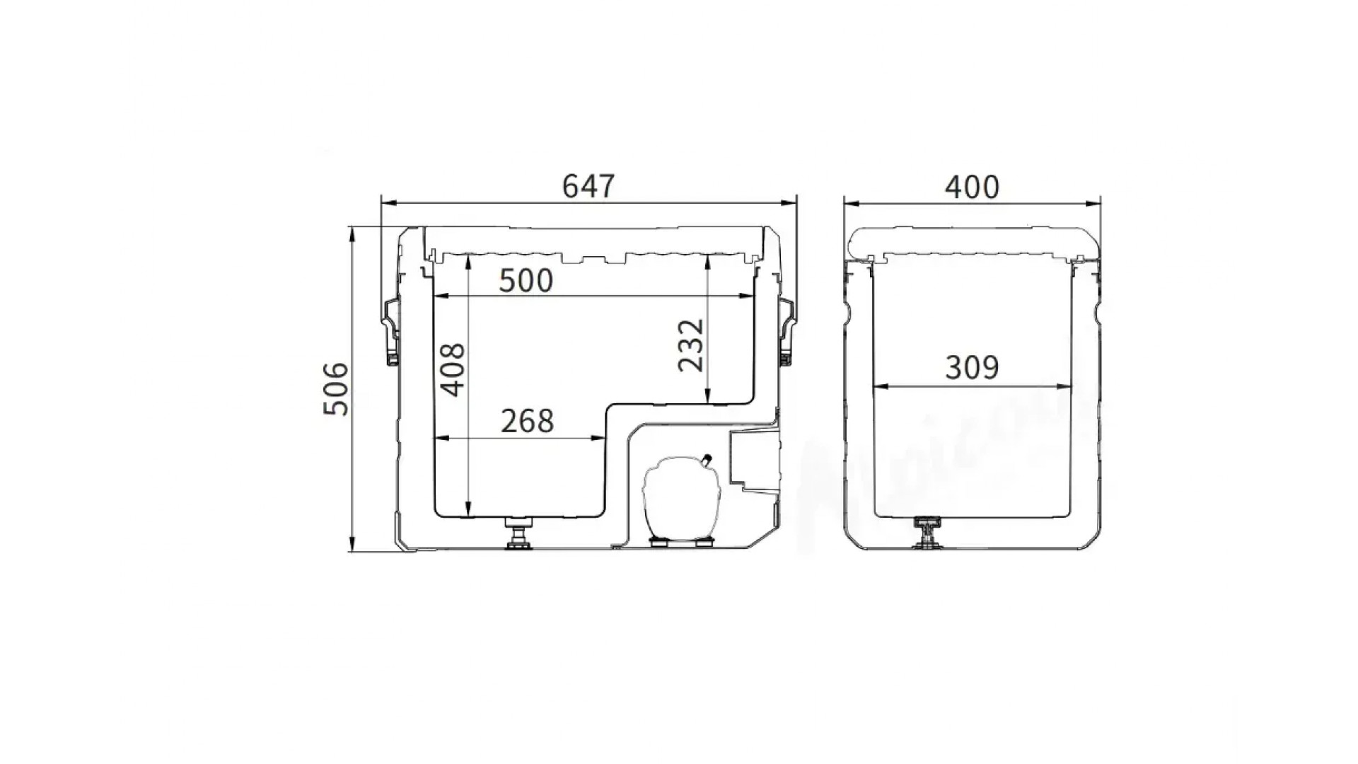 Внутренний объём в 50 литров подходит для длительных поездок: внутрь легко помещаются напитки, свежие продукты, полуфабрикаты и всё необходимое на несколько дней. Стенки гладкие, без лишних выступов — удобно мыть и не скапливается грязь. Для удобной очистки предусмотрена сливная пробка — после разморозки или мойки не нужно переворачивать холодильник: просто откройте заглушку, и вода уйдёт сама.