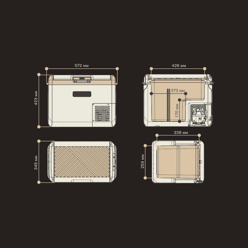 Корпус изготовлен из прочного пластика и прекрасно изолирован благодаря полиуретановой пене высокой плотности. Это гарантирует долгосрочную эксплуатацию и эффективное сохранение температуры. Благодаря компактным размерам холодильник легко разместить в автомобиле или взять его с собой в поход.
