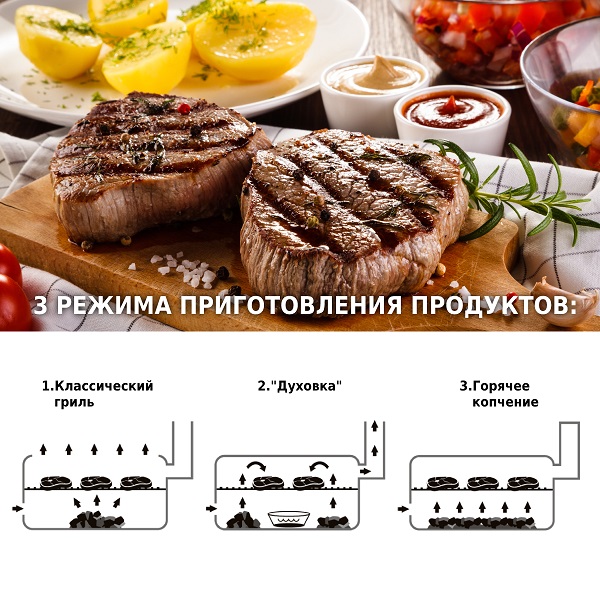 • Размер решеток для приготовления: 73х37 см