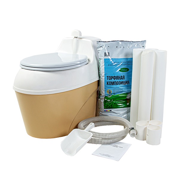 • Комплектация: корпус из 3-х частей (верхней, нижней и накопительного бака); вентиляционная труба (из 4 частей по 0,5 м); муфта (3 шт.); дренажный шланг 2 м; хомут для крепления дренажного шланга; сиденье с крышкой; мешок торфяной композиции Piteco 20 л