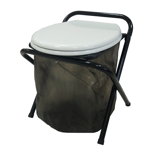 Собирается походный туалет быстро, без использования инструментов. Фиксация конструкции происходит с помощью винта с гайкой – барашек. В сложенном состоянии туалет помещается в удобную сумку чехол, что облегчает его транспортировку и хранение.