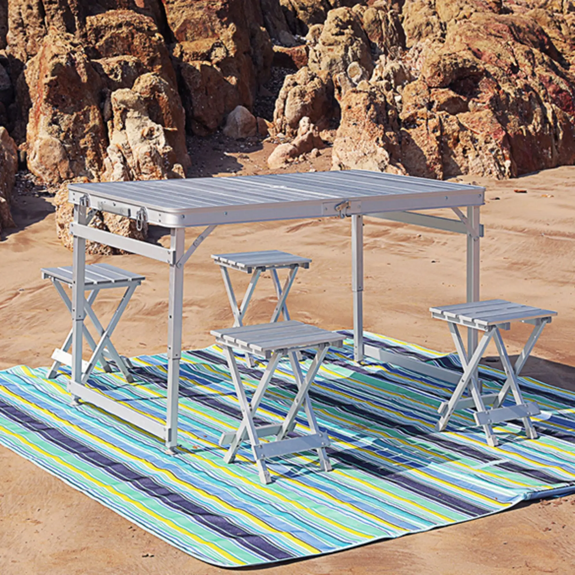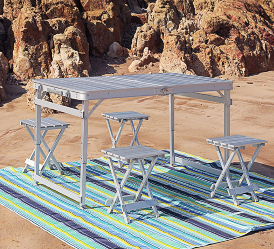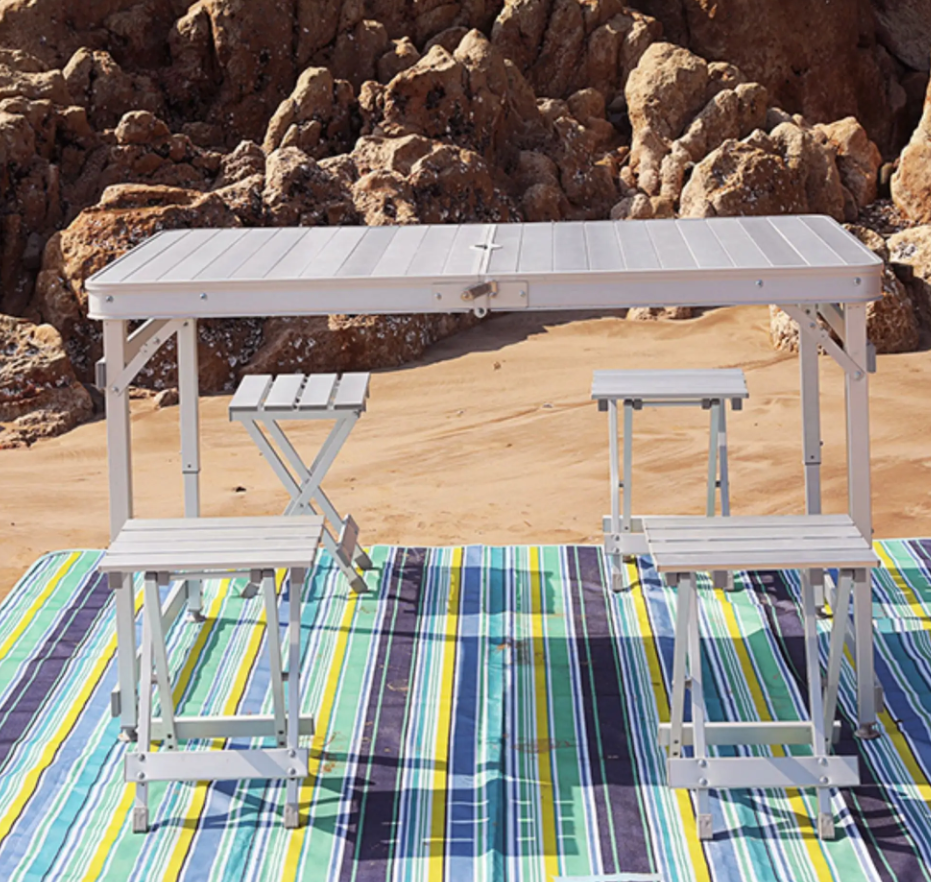 ???? Компактный и Переносной: Складной пикниковый стол с 4 алюминиевыми табуретками в комплекте, простой в транспортировке и хранении