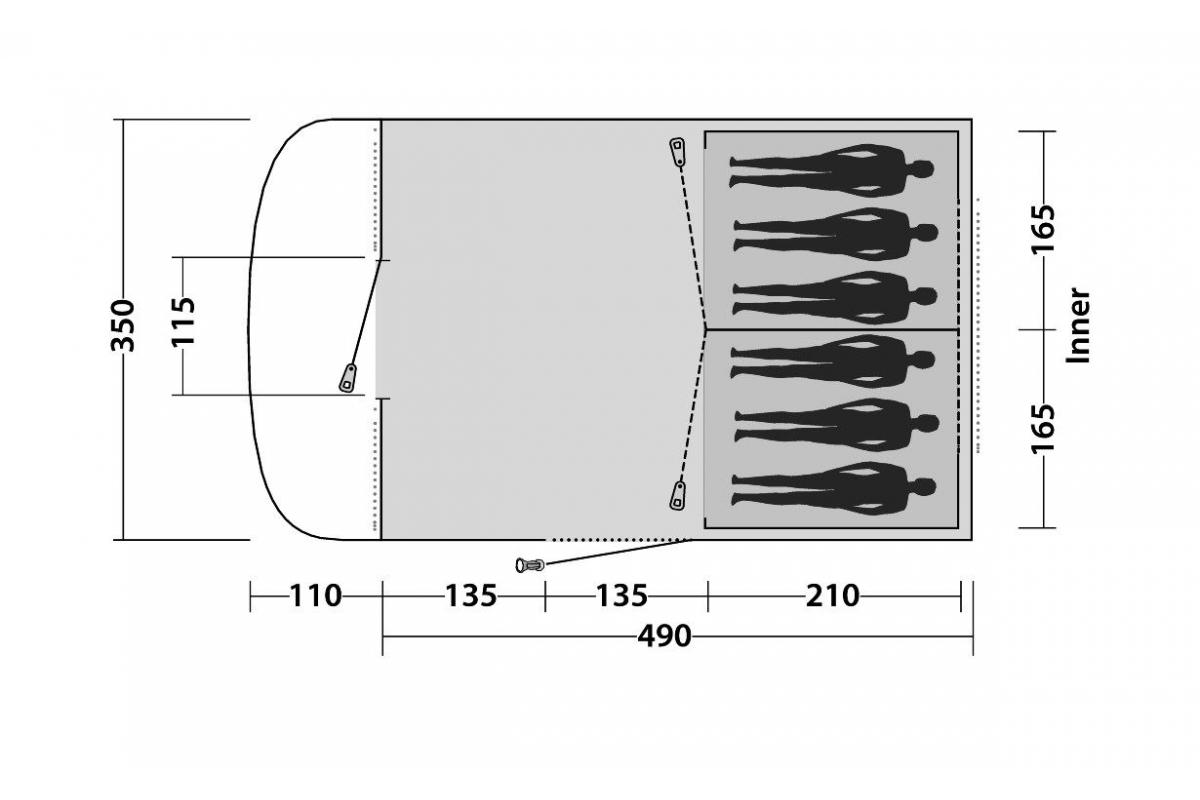 Большая кемпинговая палатка на 6 человек. Состоит из двух спальных отделений и огромного тамбура. Здесь есть всё что может предложить лучший европейский производитель снаряжения для кемпинга люксовых марок Robens,Outwell,Easy Camp, (концерн Robens Дания).Высокая в своем классе ветроустойчивость и водостойкость тента не менее 3000 мм.в.ст., а так же каркаса из прочного фибергласа 12.7мм. Кемпинговая палатка Палмдейл обладает большими прозрачными окнами в тамбуре, москитные сетки в спальных отделениях, вентиляции и боковой двери. Вшитый пол, что обеспечивает безопасность от проникновения в палатку комаров, мошек и змей. Удобный органайзер для личных вещей, крепление фонаря, отверстие на монии для проведения электрической разетки в палатку.