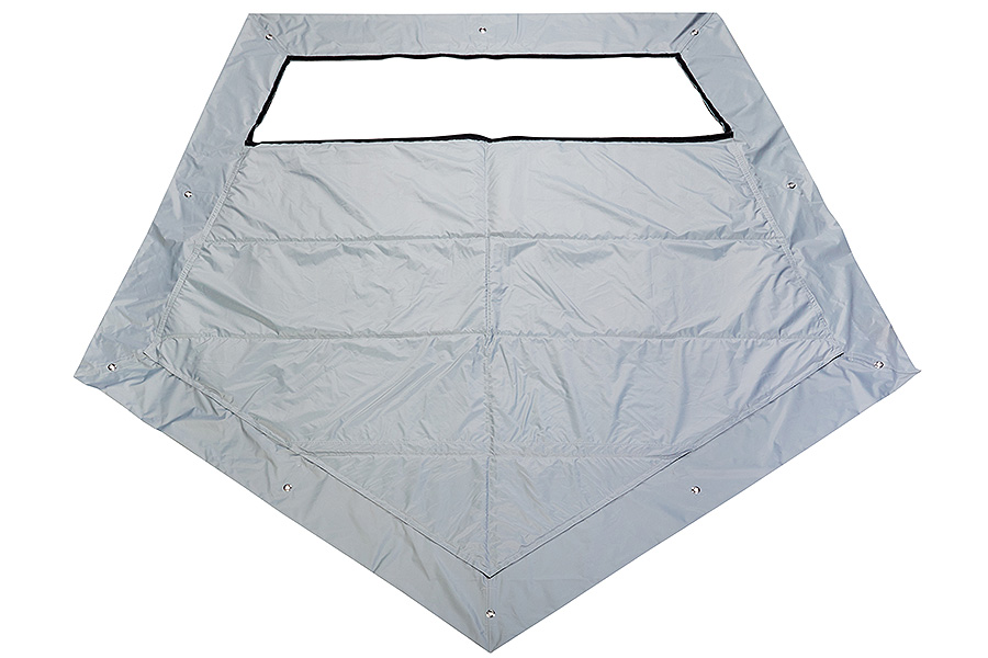 В качестве утеплителя используется Пенофол - это вспененный полиэтилен, который обладает низким коэффициентом теплопроводности и практически нулевым водопоглощением, не гниет, прочный, эластичный. Сохраняет свои свойства вплоть до температуры -60C. Встроено съемное окно для рыбалки в палатке, размером 200*56*240см (крепится на липучке).