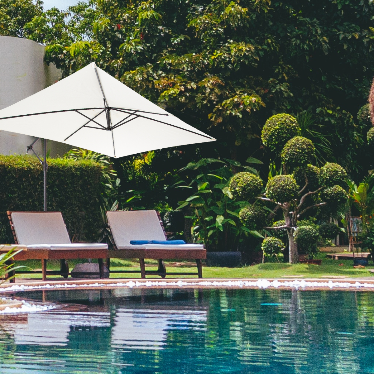 В комплекте с зонтом идет основание – крестовина, на которую для устойчивости можно установить бетонные утяжелители (в комплект не входят) или привернуть ее через имеющиеся отверстия к полу.