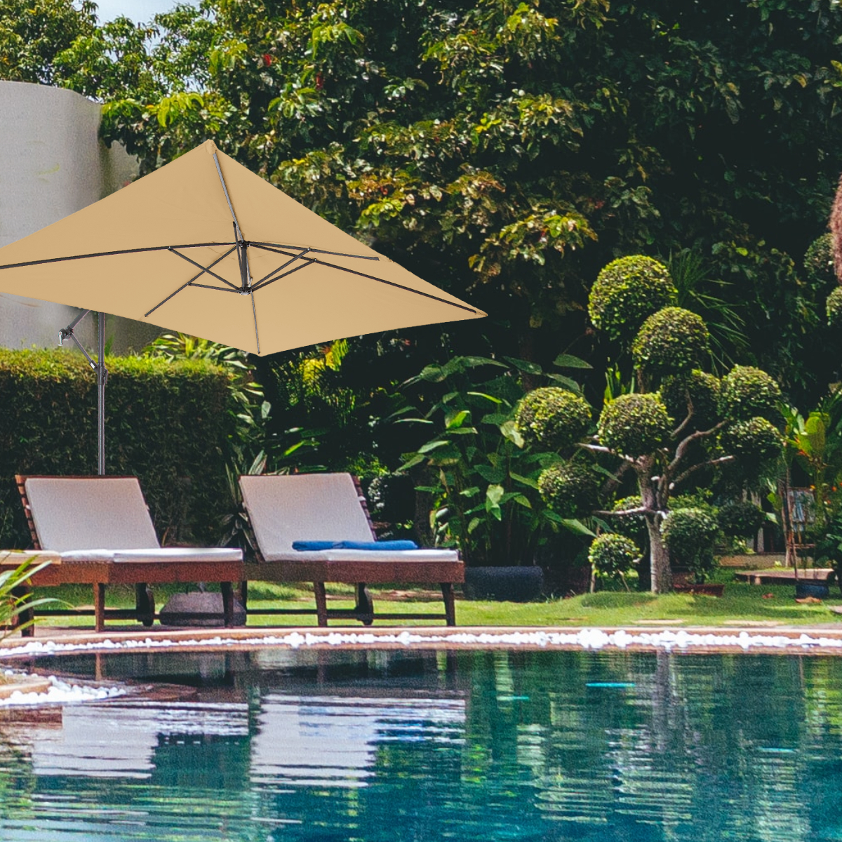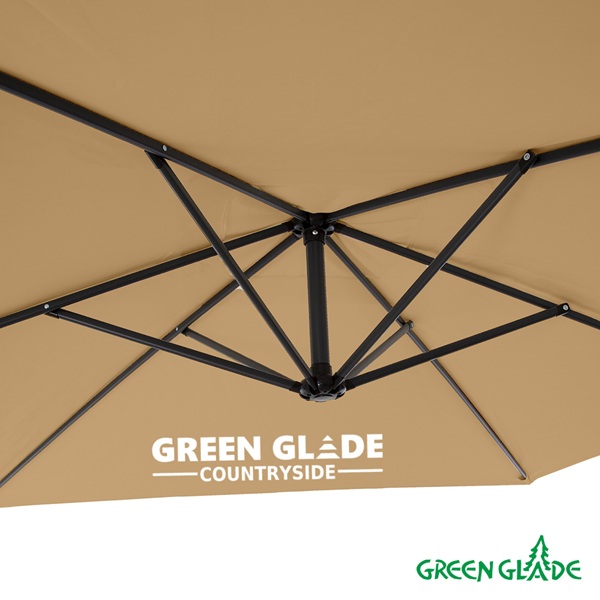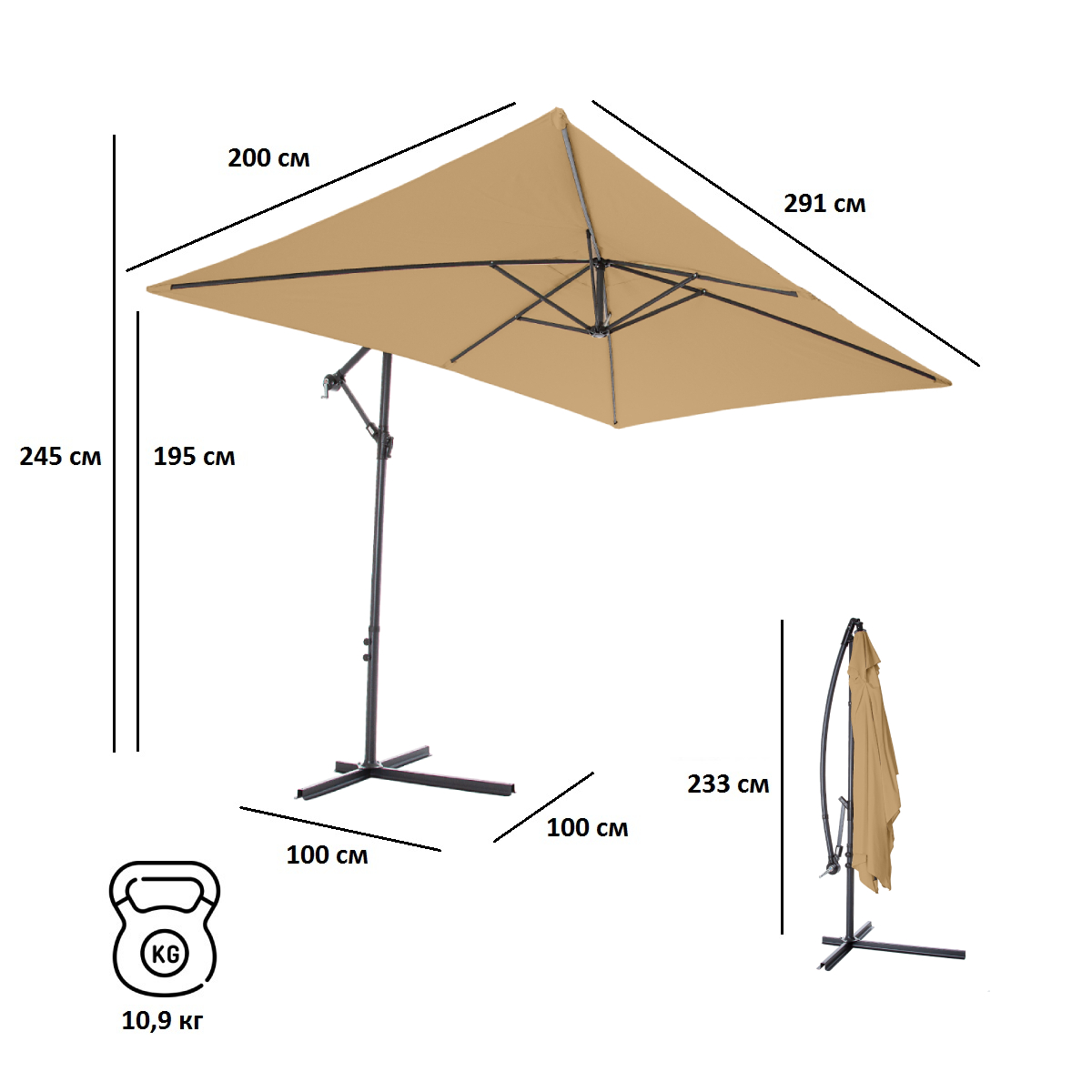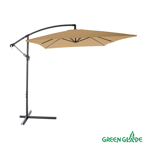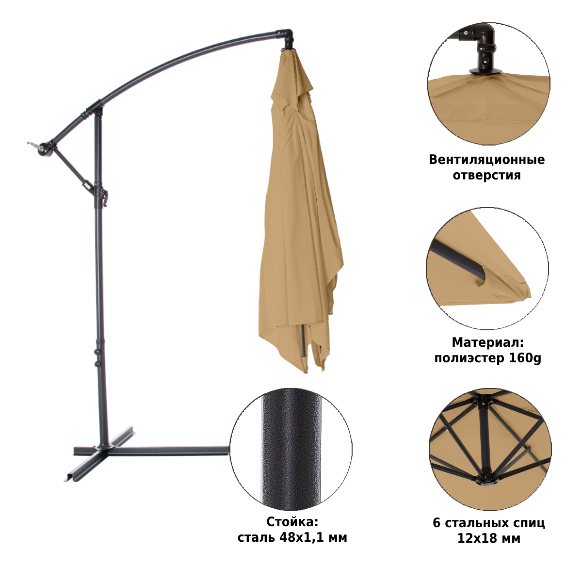 В комплекте с зонтом идет основание – крестовина, на которую для устойчивости можно установить бетонные утяжелители (в комплект не входят) или привернуть ее через имеющиеся отверстия к полу.